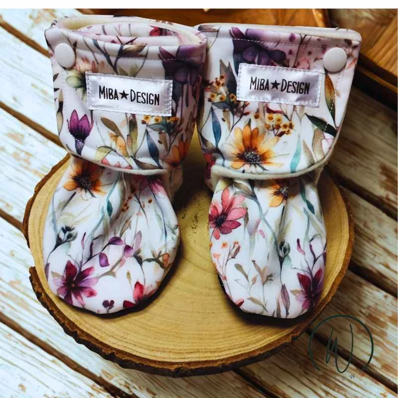 Capáčky softshell/beránek -kvítí a bílé