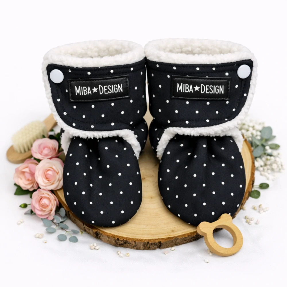 Nepadají, zahřejí a udělají velkou parádu. Capáčky mají hřejivou podšívku, která udržuje malé nožičky v teple. Snadno se nazouvají díky zapínání na suchý zip a patent. Všitá gumička kolem celého obvodu zajistí správné místo na nožičce a přesto netlačí.