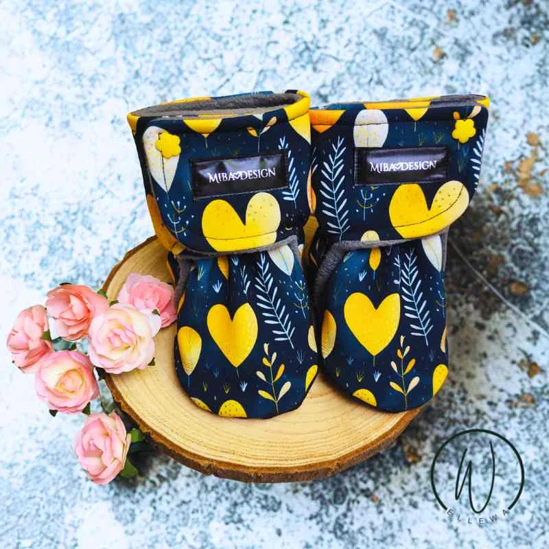 Nepadají, zahřejí a udělají velkou parádu. Capáčky mají hřejivou podšívku, která udržuje malé nožičky v teple. Snadno se nazouvají díky zapínání na suchý zip a patent. Všitá gumička kolem celého obvodu zajistí správné místo na nožičce a přesto netlačí.