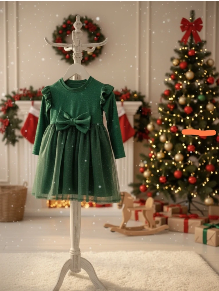 3. Dětské vánoční třpytivé šaty-zelená