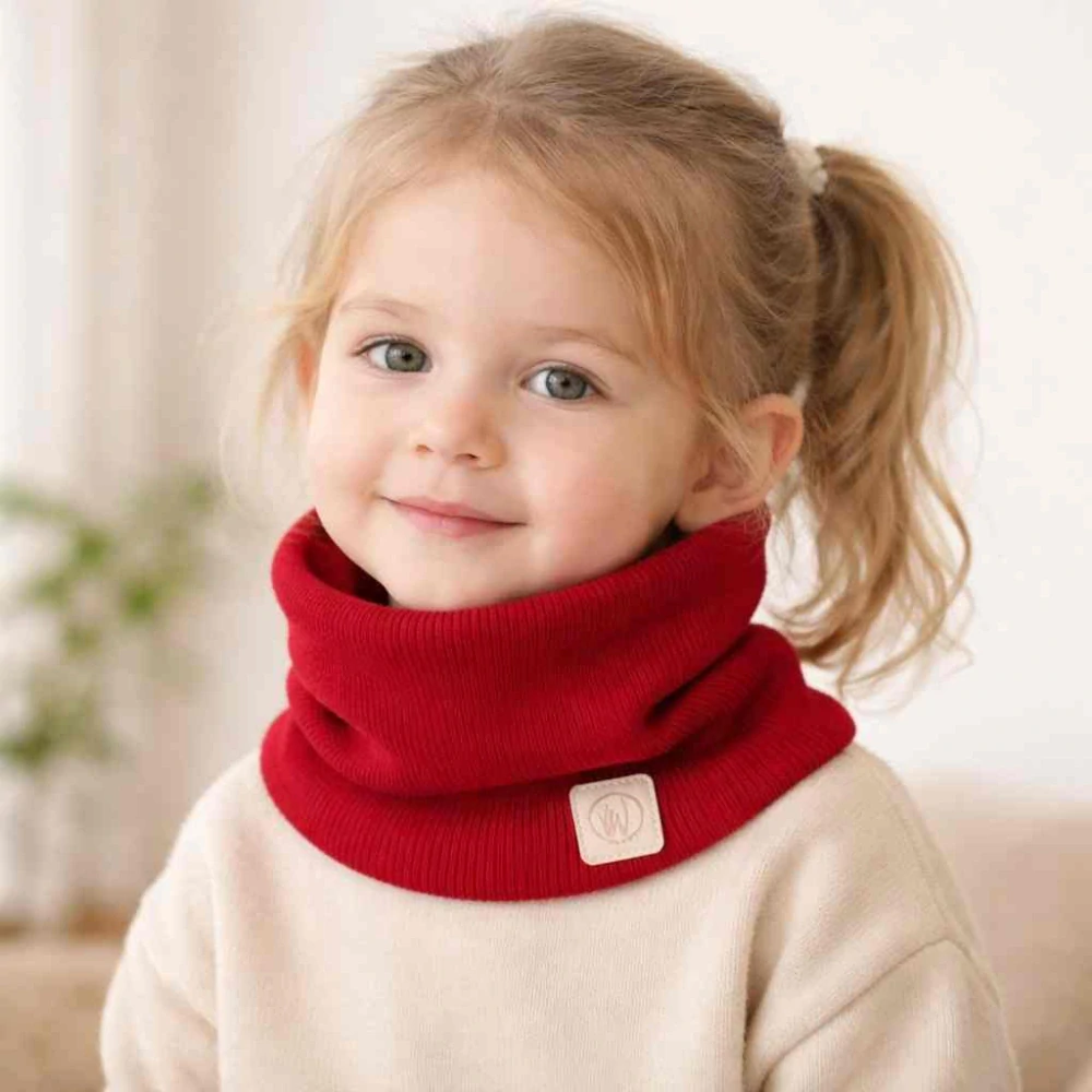 Stylový a praktický jednovrstvý dětský nákrčník z příjemného žebrovaného úpletu, který spolehlivě ochrání krk vašeho dítěte před chladem i větrem.