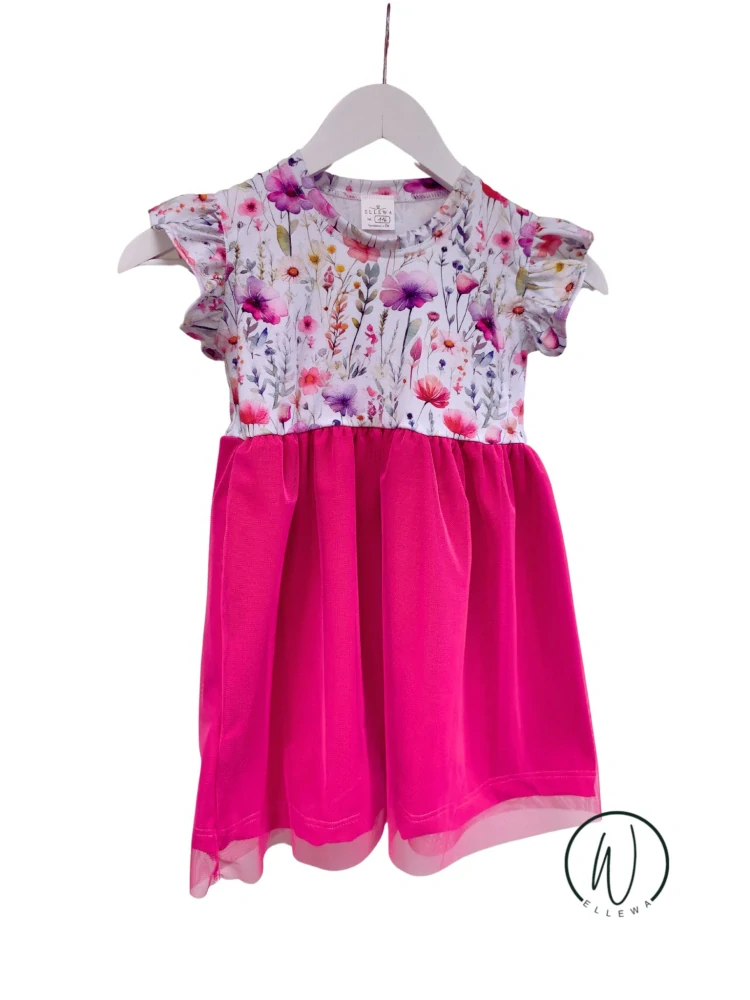 - šaty květy s tylovou sukní fushia