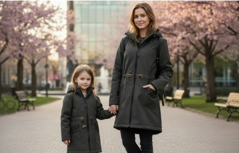 Náš nový dlouho připravovaný střih dámská a dětská parka rovnějšího prodlouženého střihu s projmutým pasem, který hlavně tvaruje