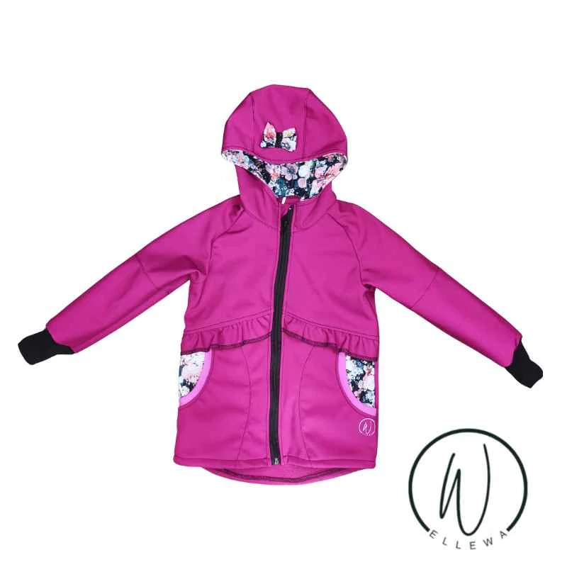 Softshellová bunda Premium -ostružina/třešně s volánky+mašle