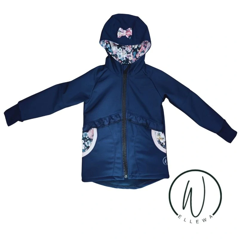 - Softshellová bunda Premium -tmavě modrá/třešně s volánky +mašle