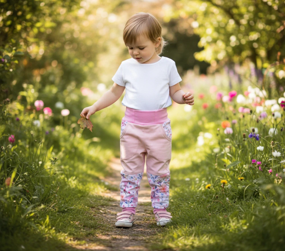 - Softshellové kalhoty klasik-jednorožec a květy na bílé