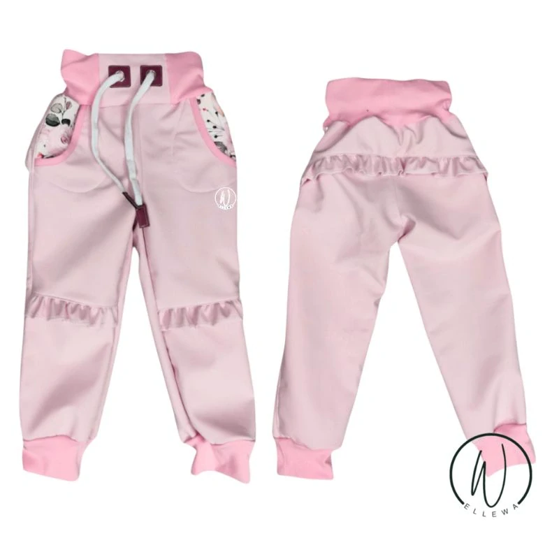 Softshellové kalhoty Premium -světle růžová + volánky a květy
