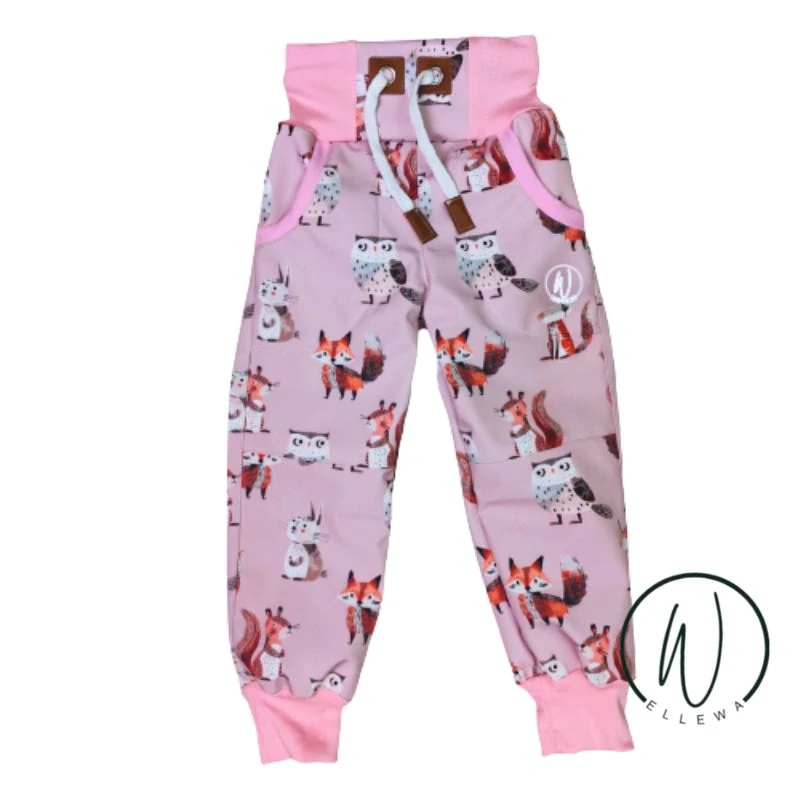 Softshellové kalhoty Premium-zvířátka na růžové